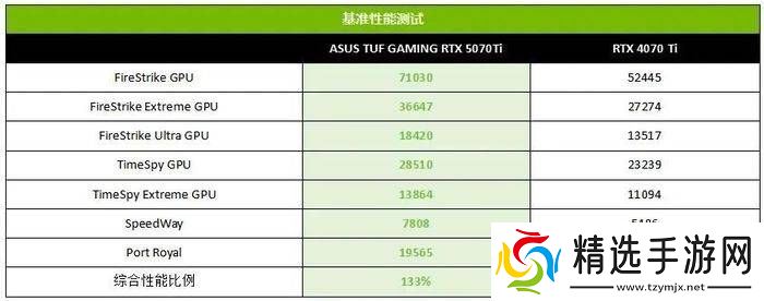 在性能测试中,TUF GAMING RTX 5070Ti相较于上一代RTX 4070 Ti,在3DMark基准测试中实现了平均33%的性能提升。在DLSS 4技术的加持下,这款显卡在《赛博朋克2077》、《霍格沃兹之遗》和《漫威争锋》等游戏中,即使在4K极限光追设置下,也能轻松实现超过百帧的流畅度,为玩家带来极致的视觉享受。在2K分辨率的光栅化游戏中,TUF GAMING RTX 5070Ti同样表现出色,多款游戏的帧率远超RTX 4070 Ti,领先幅度均在20%以上。
