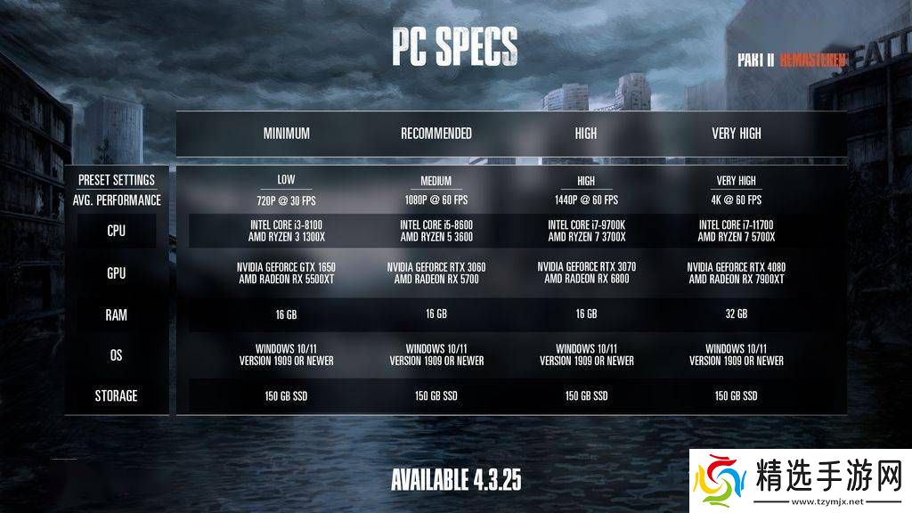 与原版《最后生还者2》相比,Remastered版本在PC平台上进行了多项优化和新增功能。玩家将能够享受到Steam成就系统、超宽屏支持、HDR效果以及专为PC设计的显示与图形菜单,这些功能让玩家能够根据个人喜好调整游戏性能。游戏还支持英伟达DLSS 3和AMD FSR 3.1等帧生成技术,以及DirectStorage技术,进一步提升了游戏的加载速度和画面质量。