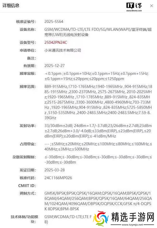 回顾今年3月28日,一款型号为25042PN24C的小米新机已经通过了工信部无线电核准,该机型支持超宽带(UWB)无线电发射技术。这一技术此前曾在小米MIX 4手机上得到应用,作为小米首款搭载“一指连”技术的产品,UWB技术为用户带来了全新的交互体验。然而,在后续的小米旗舰系列中,这一配置并未得到延续。