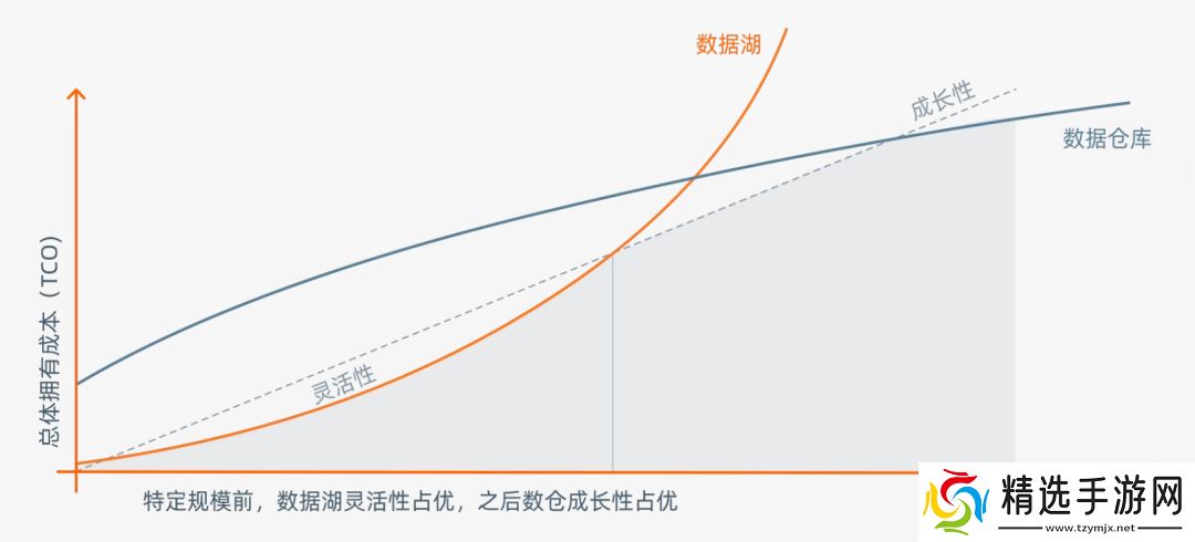 从成本的角度来看,数据湖的起步成本很低,但随着数据体量的增大,成本会迅速飙升。而数据仓库恰好相反,前期建设开支很大,后期成本增加趋缓。