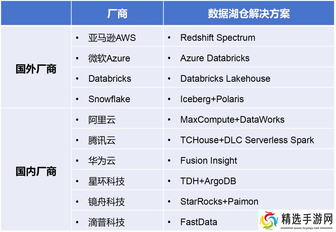 目前,在数据湖仓领域比较有代表性的服务商,包括国外的 AWS(亚马逊云科技)、微软 Azure、Databricks、Snowflake,以及国内的阿里云、腾讯云、华为云、星环科技等。