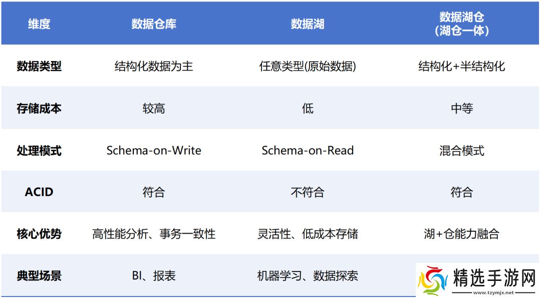 而数据湖,出现于 2010 年代,主要基于大数据技术(Hadoop 等)生态,用于支撑多样化的数据存储,实时性更强,适合满足批处理、流式计算等业务场景。
