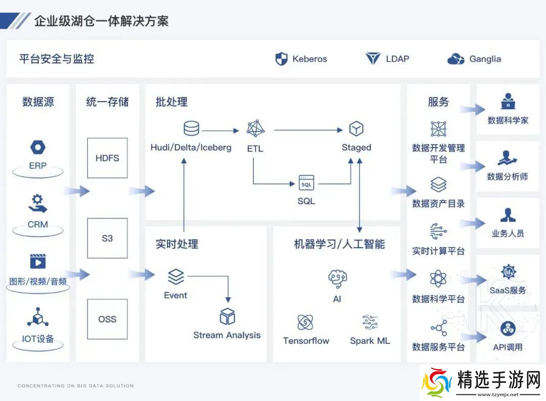在数据存储方面,继承了数据湖的优势,支持多样化数据,且以 HDFS 或云对象存储为基础,实现了低成本、高可用。数据以原始格式或开放文件格式(如 Parquet、ORC)存储,具备高效的压缩比与列存储特性,方便查找。