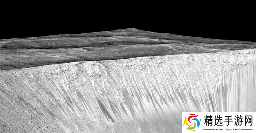 我们还观测到被称为“季节性斜坡纹线”的地貌,其特征像是沿着斜坡向下延伸的黑色条纹。这些深色条纹会随季节生长延伸。轨道探测器拍摄过其生长前后的变化影像。有一种假设认为,这可能是由快速上升的地下水补给造成的,或者是夏季少量冰融化后润滑了坡面。但其水源成因尚未可知,也可能是干雪崩(dry avalanche)造成的。毕竟火星和其他行星上存在许多地球没有的地质现象。