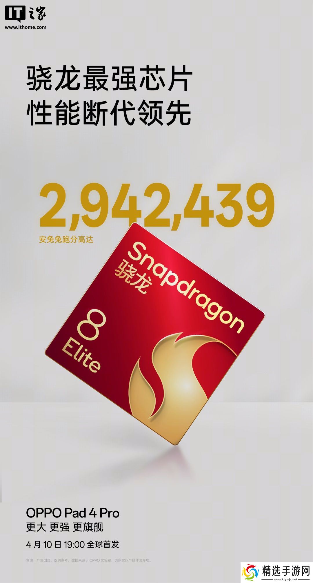 根据 OPPO 官方最新预热,OPPO Pad 4 Pro 平板将搭载高通骁龙 8 Elite 芯片,安兔兔跑分超 294 万(2,942,439),同时内置 12140mAh 电池。
