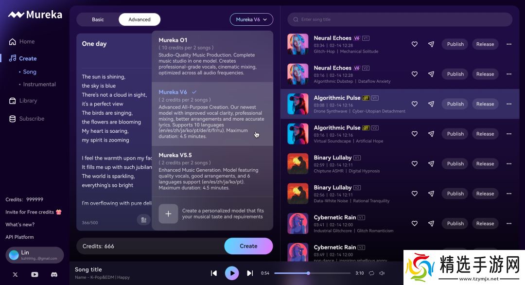 Mureka V6 是当前 Mureka 的基座模型,支持纯音乐生成,还支持 10 种语言的 AI 音乐创作,包括英语、中文、日语、韩语、法语、西班牙语、葡萄牙语、德语、意大利语和俄语。在 Mureka V6 中,团队引入自研 ICL(in-context learning)技术,使得声场更加开阔,人声质感和混音设计进一步强化。