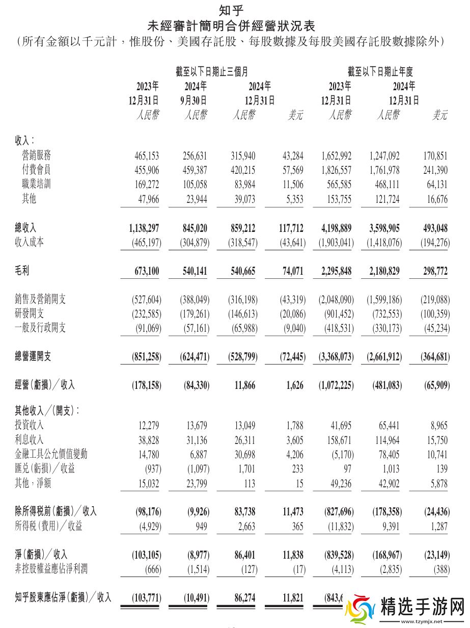 本站 3 月 26 日消息,知乎今日发布截至 2024 年 12 月 31 日止季度及全年未经审计财务业绩公告: