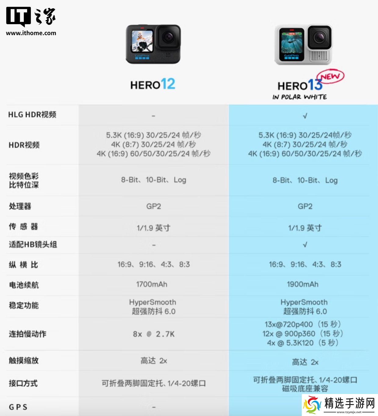 本站附该相机对比 Hero 12 对比参数如下,目前,该相机在京东售价 2998 元,国补 15% 到手价 2548.3 元起: