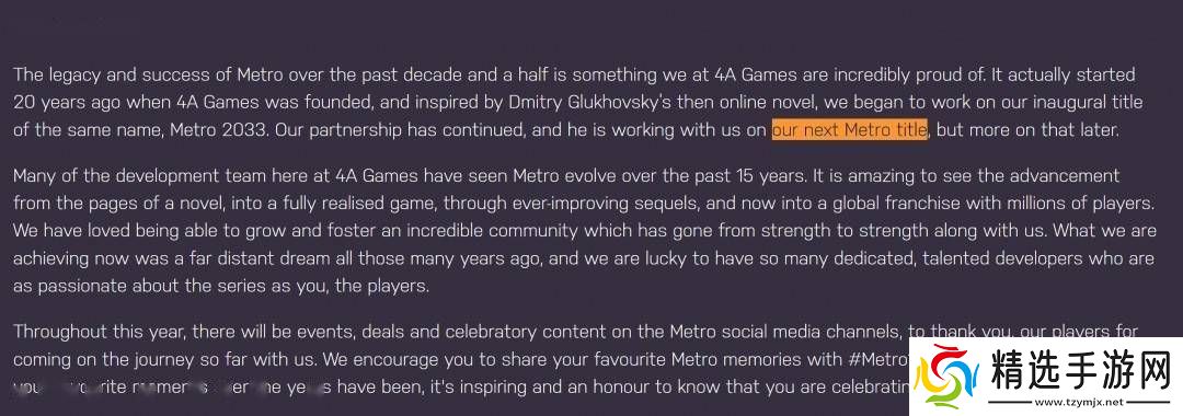 除了继续开发新的《地铁》系列游戏外,4A Games还透露了他们正在同时开发另一款全新的3A级游戏,以及一个尚未公布的全新IP。这一消息无疑为玩家们带来了更多的期待和惊喜。
