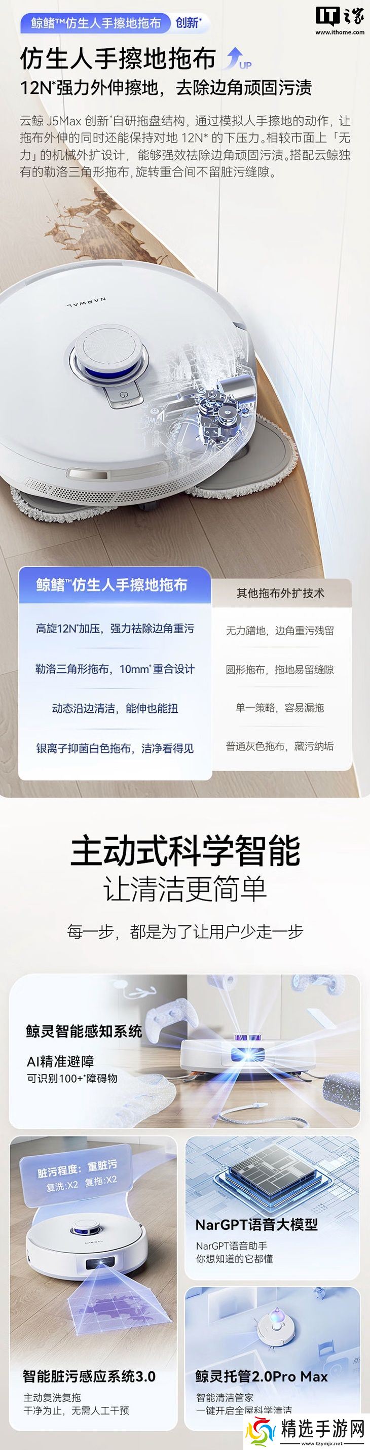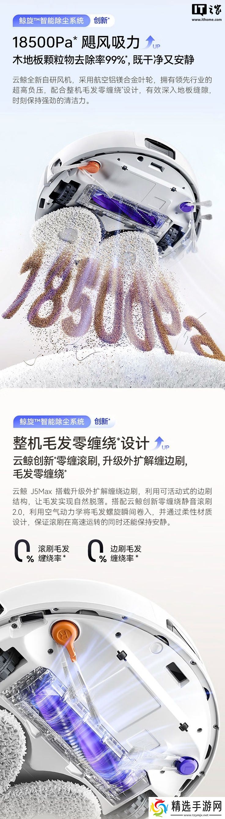 本站 4 月 10 日消息,云鲸 J5 Max的扫拖机器人今日全网现货开售,新品主打“18500Pa吸力、外扩解缠绕边刷”,定价为3599元起,本站整理价格信息如下: