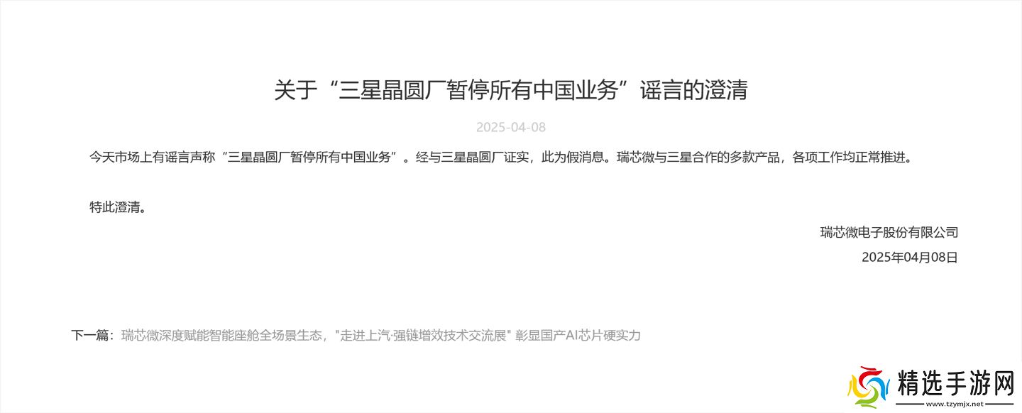 近期,有关“三星晶圆厂全面叫停中国业务”的传闻在网络上引起了广泛关注。对此,国内知名芯片设计厂商瑞芯微迅速作出反应,通过其官方网站发布了正式的澄清声明。