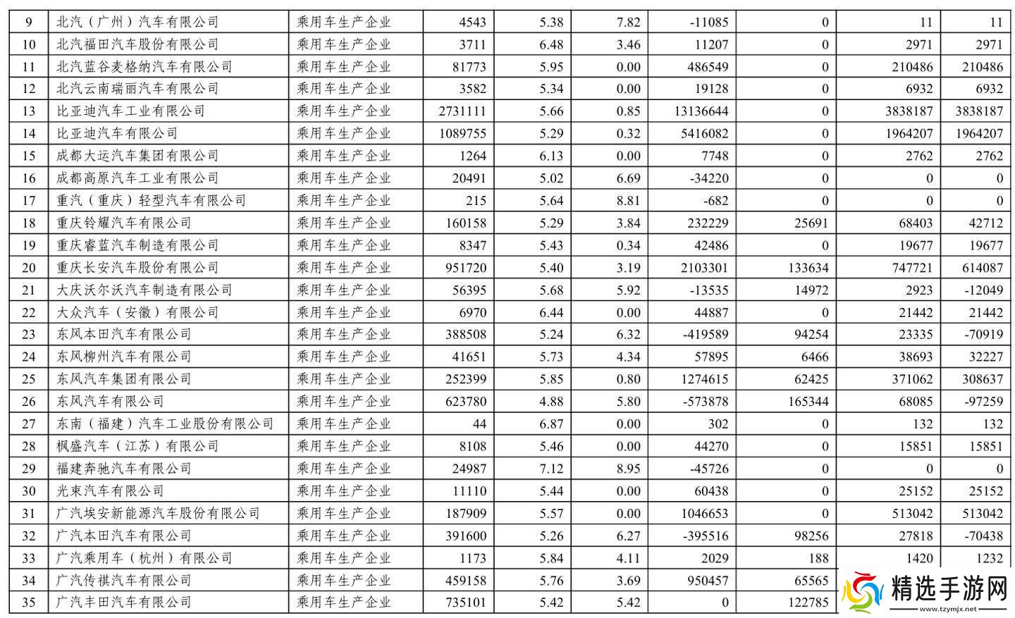 然而,并非所有企业都能交出满意的答卷。在参与核算的90家企业中,有29家企业的平均燃料消耗量积分为负,其中包括北京奔驰、北京现代、北汽(广州)汽车、成都高原汽车、重汽(重庆)轻型汽车、大庆沃尔沃汽车、东风本田、东风汽车、福建奔驰汽车、广汽本田、贵州云雀汽车、海南海马汽车、华晨宝马、江铃汽车、江苏悦达起亚、江西五十铃汽车、江西志骋汽车、奇瑞捷豹路虎、奇瑞商用车(安徽)、上汽大众、上汽通用(沈阳)北盛汽车、上汽通用东岳汽车、神龙汽车、鑫源汽车、一汽-大众、一汽丰田汽车(成都)、一汽吉林汽车、长安福特、长安马自达和郑州日产。这些企业需要在未来加大在节能减排和新能源技术方面的投入,以改善其积分表现。