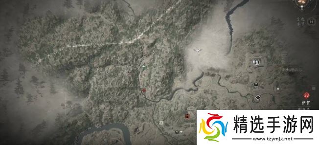 《刺客信条:影》中的奈绪江有14把传说武器,鬼面就是其中之一,然而很多玩家不清楚鬼面的具体获取位置,首先,前往伊贺御齐关右边的岛原谷,圆圈标点处。