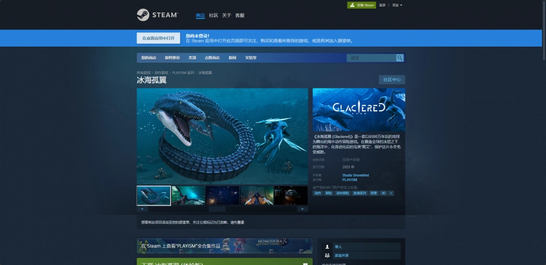 《冰海孤翼》是一款设定于6500万年后的深海动作冒险游戏,而这款游戏的下载网址就是购买平台的购买页面,比如Steam版就是在购买页面购买之后,点击页面中的马上开玩就可以开始下载了。