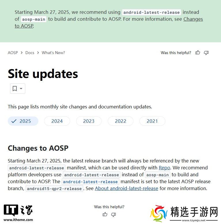 此外,谷歌也表示新“android-latest-release”清单将始终引用最新的 AOSP发布分支,建议开发者使用“android-latest-release”而非“aosp-main”。