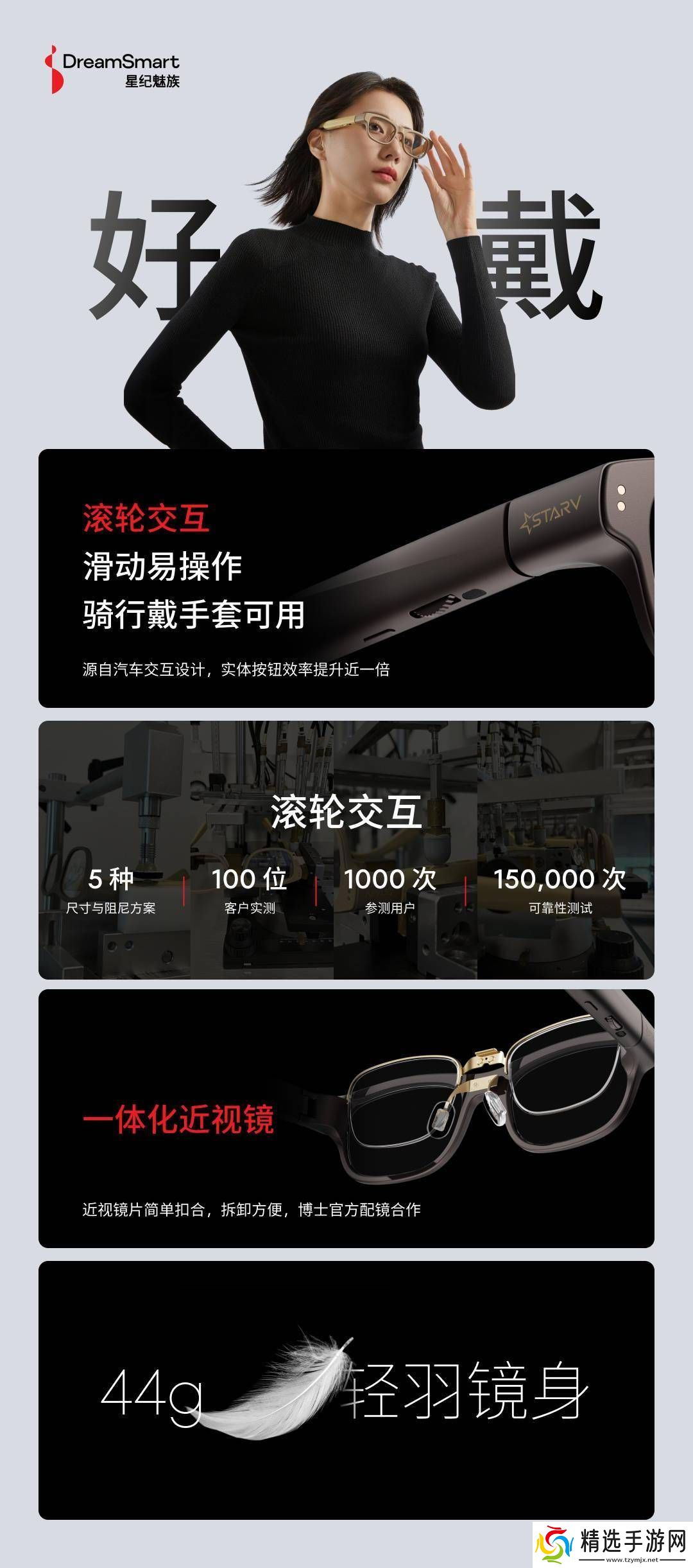为了满足用户多样化的需求,星纪魅族在StarV Air2的设计上也下足了功夫。除了轻盈便携和时尚美观的外观,这款智能眼镜还注重用户体验。例如,一体式近视镜设计使得近视用户无需再额外佩戴近视眼镜,而官方的配镜服务则确保了用户能够获得最适合自己的镜片。StarV Air2还支持多种实用功能,如实时翻译、闪念速记等,这些功能不仅提升了用户的工作效率,还丰富了用户的娱乐生活。
