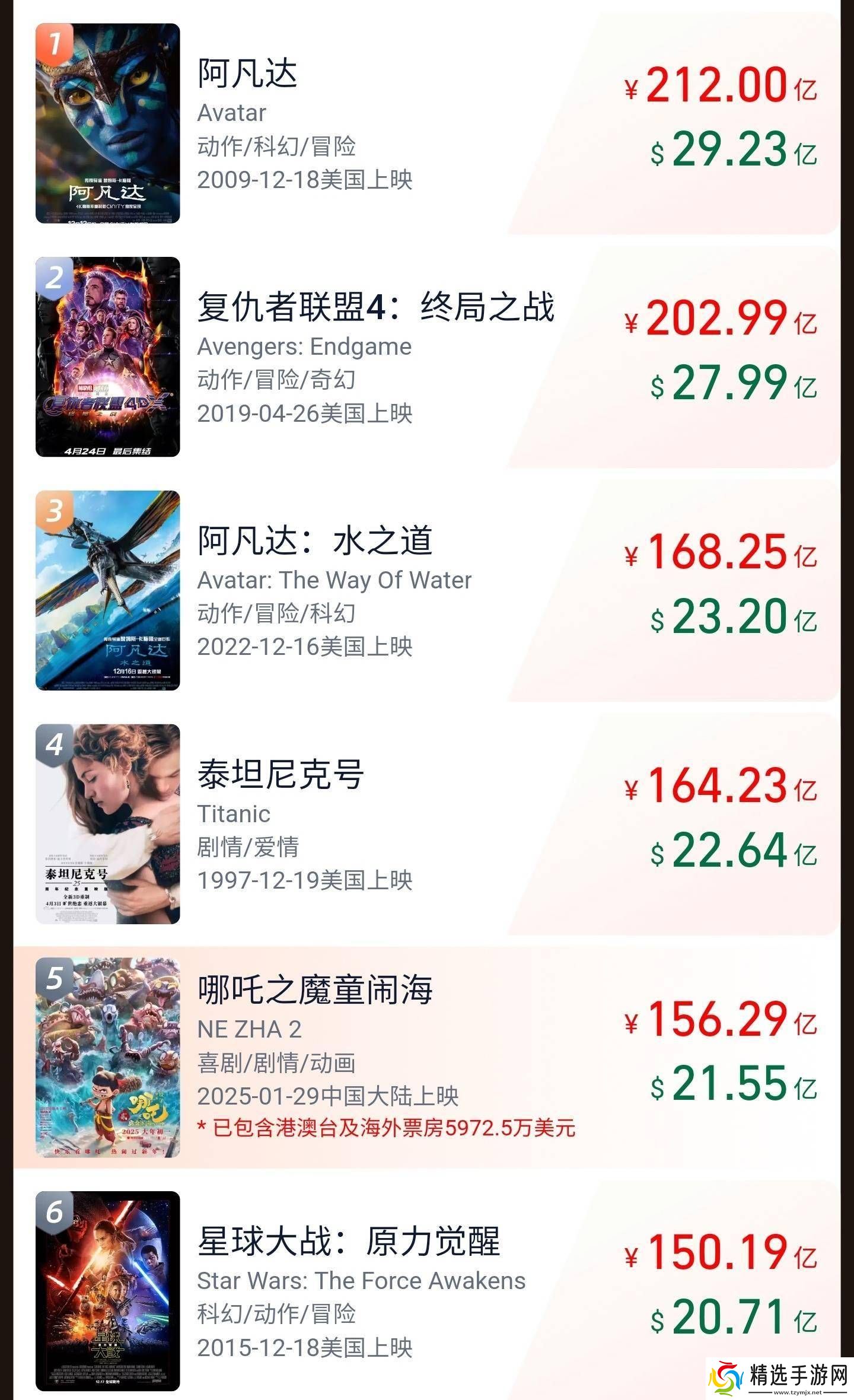《哪吒之魔童闹海》自上映以来,已经走过了75个日日夜夜。在这段时间里,它不仅在国内市场大放异彩,还在全球范围内赢得了观众的喜爱。据统计,该片的全球票房已经达到了156.29亿元,其中港澳台及海外票房贡献了5972.5万美元(按当前汇率计算,约合4.36亿元人民币)。这一成绩使得《哪吒之魔童闹海》在全球影史票房榜上暂列第五位,仅次于《泰坦尼克号》的164.23亿票房。