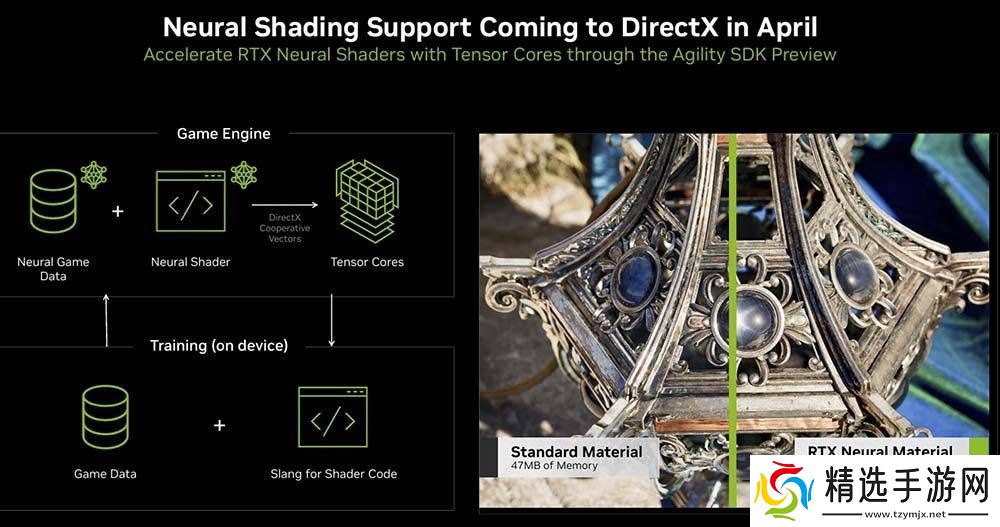 英伟达与微软的合作也为游戏开发者带来了新的福音。从4月开始,DirectX预览版将支持神经着色器,这意味着开发者能够利用英伟达RTX GPU的AI张量核心,在游戏图形管线中加速神经网络。神经着色器渲染技术,通过将AI与传统渲染相结合,旨在提升帧率、增强画质,并降低系统资源的占用。
