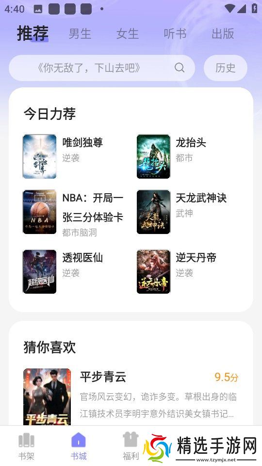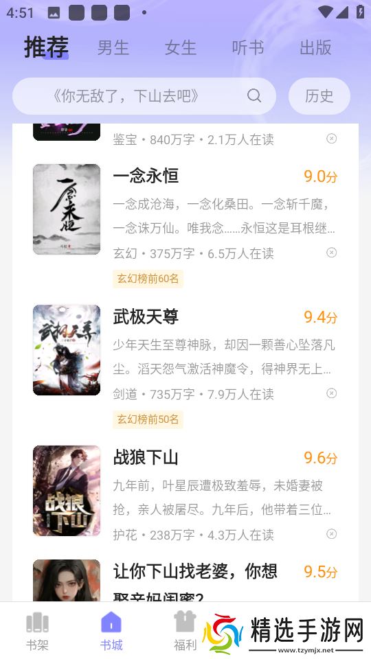 2、在书城首页,我们可以看到各种类型的小说资源。