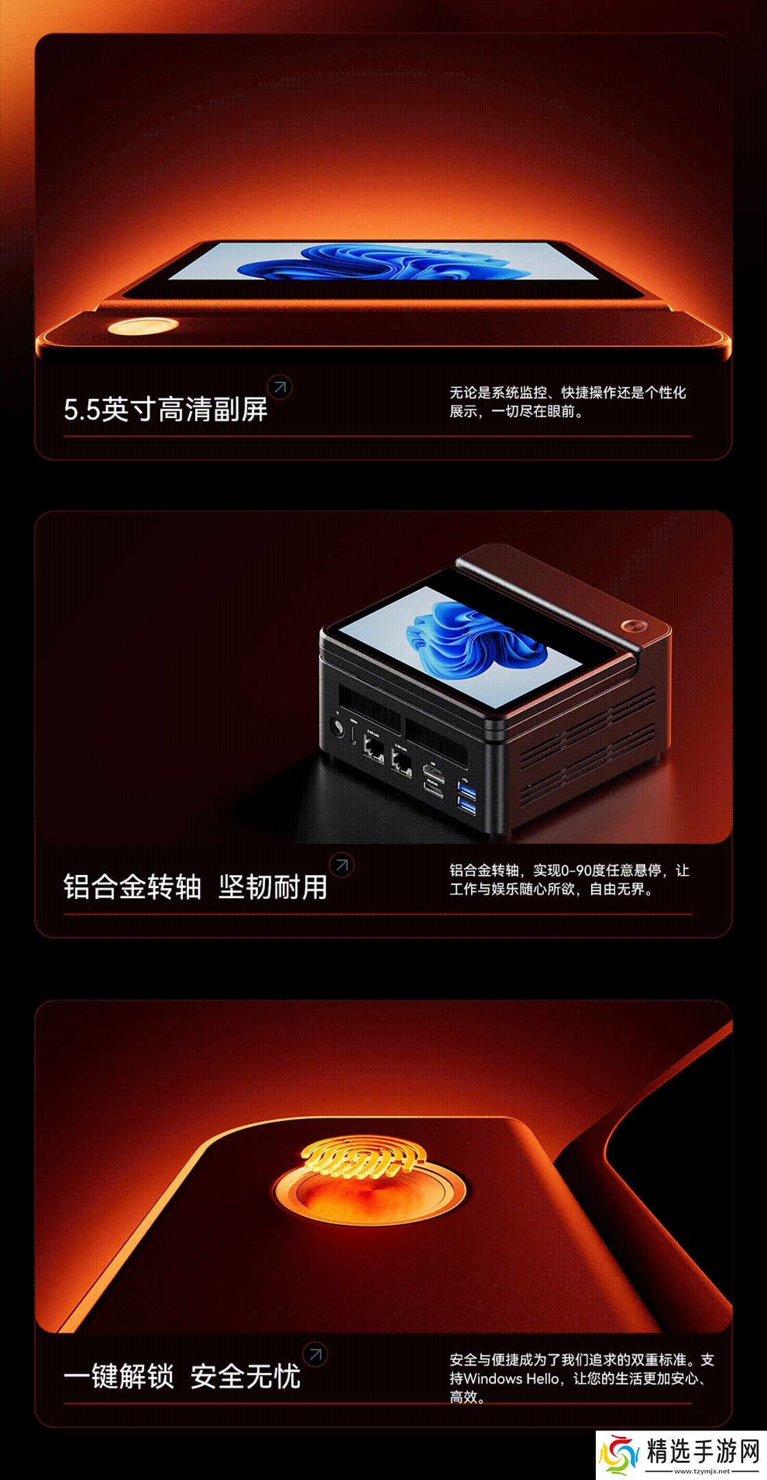 为了满足用户对扩展性的需求,G-filp 370还配备了Oculink接口,允许用户以较低的成本外接高性能显卡,进一步提升图形处理能力。该主机还集成了Windows Hello指纹识别功能,用户只需轻轻一触,即可实现一键免密码登录系统,并自动填充密码,极大地提升了安全性和便利性。