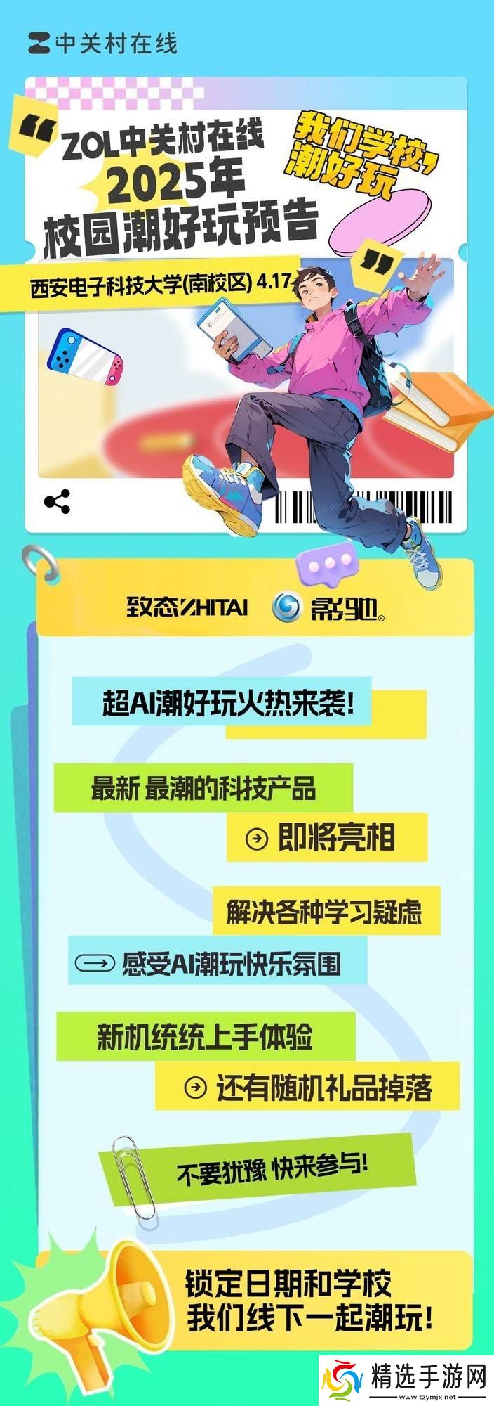 西安电子科技大学(南校区)即将迎来一场别开生面的科技盛宴,ZOL潮好玩科技娱乐嘉年华将于4月17日震撼登陆,为广大的科技爱好者们带来一场无与伦比的狂欢。