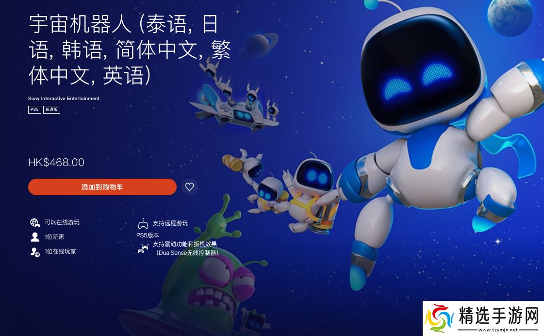 《宇宙机器人》是由索尼互动娱乐(SIE)发行的 PS5 独占游戏,是《宇宙机器人》系列的第四作,剧情主要为玩家扮演的机器人“Astro”与其同伴搭乘着的 PS5 造型的母舰因遭外星人袭击而破坏后,在整个银河系各个星球中寻回散落的飞船零件与机器人同伴的故事。本作获得 2024 年 TGA(游戏大奖)中的年度最佳游戏,目前 PlayStation 港服商店售价 468 港币(本站注:现汇率约合 437 元人民币)。