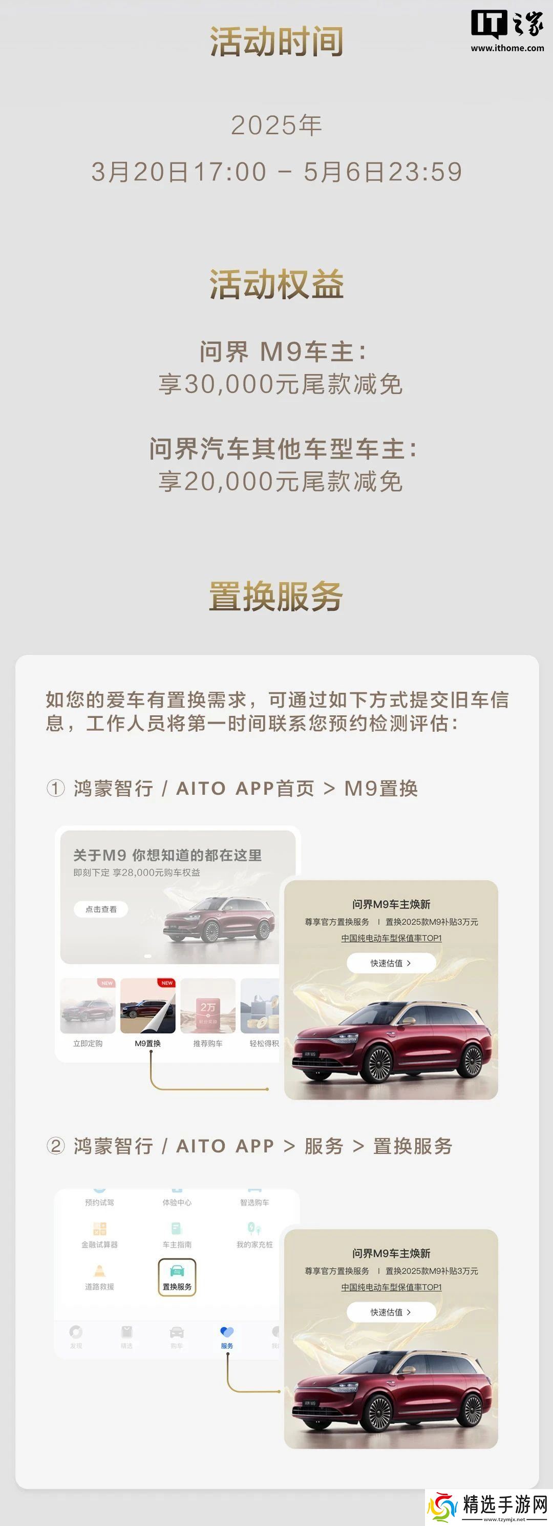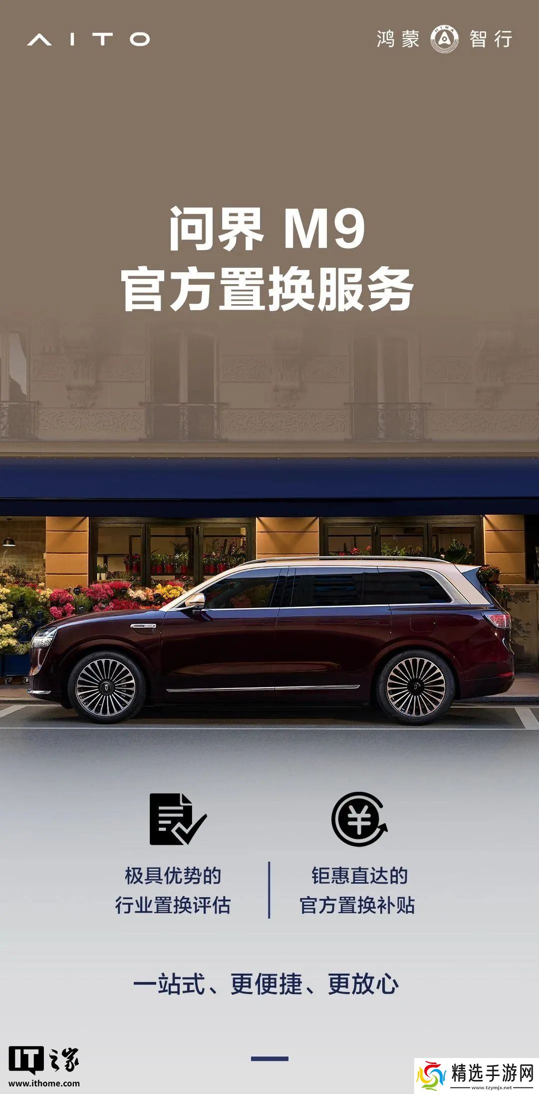 本站 3 月 30 日消息,问界汽车官方公众号昨日晚发文宣布,问界 M9 汽车官方置换服务已上线。