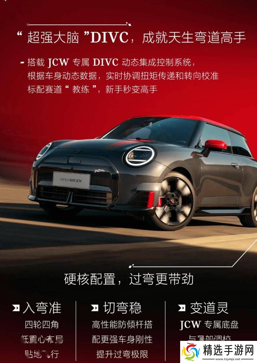 在动力方面,全新电动MINI JCW搭载了JCW专属的DIVC动态集成控制系统,该系统能够根据车身动态数据实时协调扭矩传递和转向校准,确保车辆在各种路况下都能表现出色。新车还采用了四轮四角低重心布局,配备了高性能防倾斜杆、JCW专属底盘与悬架**,进一步提升了操控性能。
