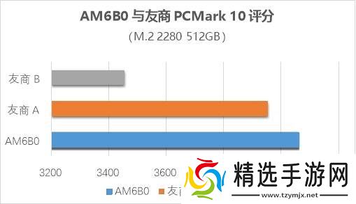 为了全面验证AM6B0的综合性能,测试团队在多种办公场景下对其进行了基准测试。在PCMark 10测试中,AM6B0在512GB、1TB等多个容量点的综合评分均超过了4000分,不仅在同系产品中表现领先,也优于市场上其他同类产品。这一得分充分证明了AM6B0的综合性能,无论是在日常办公、娱乐场景,还是在视频剪辑、工业制图、3D渲染及大型游戏等中高强度专业应用中,AM6B0都能为用户提供流畅的使用体验。