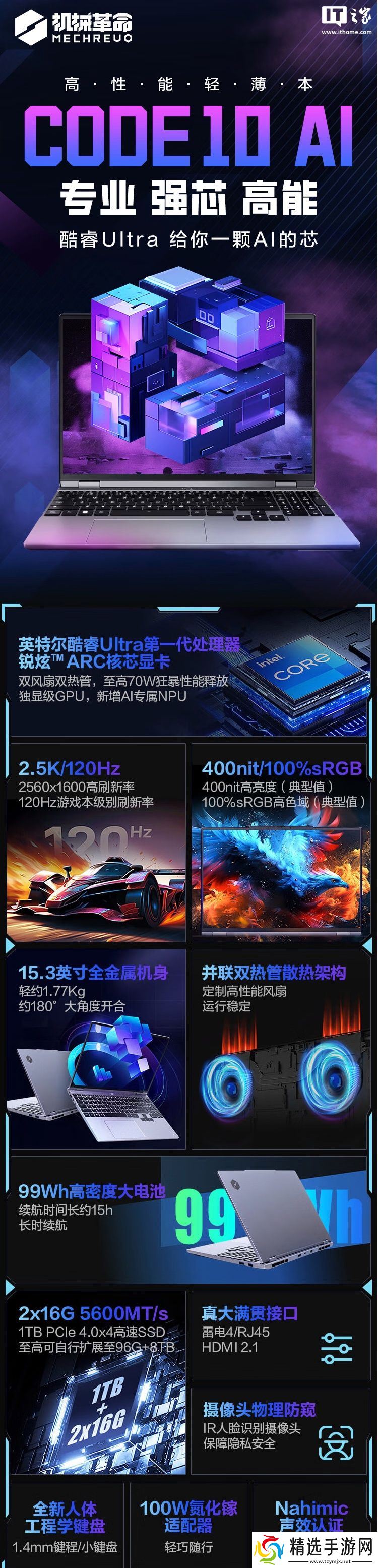 本站3 月 28 日消息,机械革命旗下“程序员本” Code10 AI 现已在京东上架,该机搭载英特尔酷睿 Ultra7 155H + 32GB RAM + 1TB 存储空间,预装智谱 CodeGeeX NANO,首发 5499 元,叠加国补到手价 4399.2 元,将于 3 月 31 日 0 点开售。