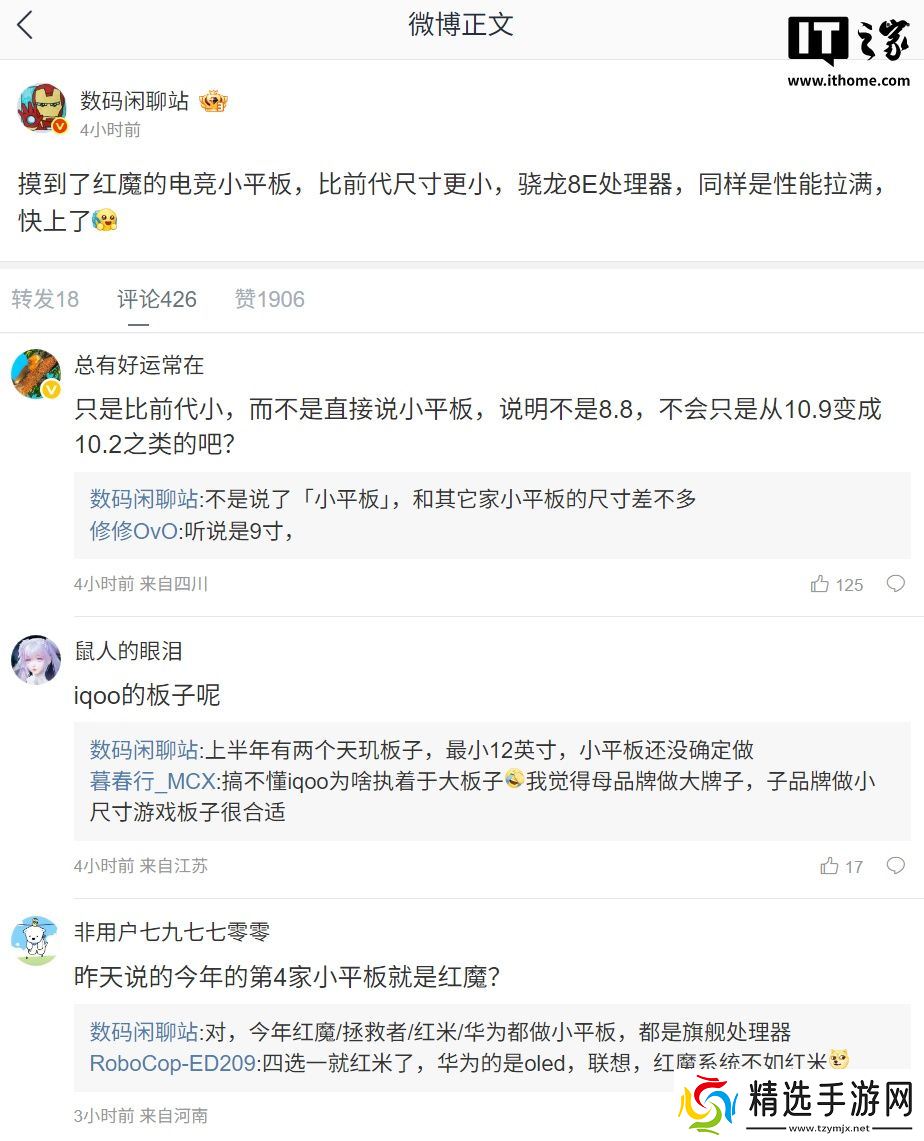 据本站此前报道,有爆料称红魔电竞小平板将搭载骁龙 8 至尊版处理器。今年红魔 / 拯救者 / REDMI / 华为都会推出小平板,且都将搭载旗舰处理器。