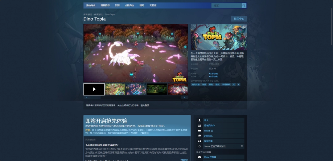 Steam页面链接:https://store.steampowered.com/app/3336520/Dino_Topia/。