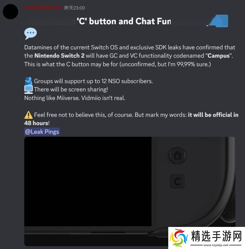 值得注意的是,随着任天堂Switch 2游戏掌机细节的逐渐曝光,玩家们的期待值也在不断攀升。无论是C键的神秘面纱,还是群聊、语音聊天等新功能的加入,都让这款游戏掌机的未来充满了无限可能。