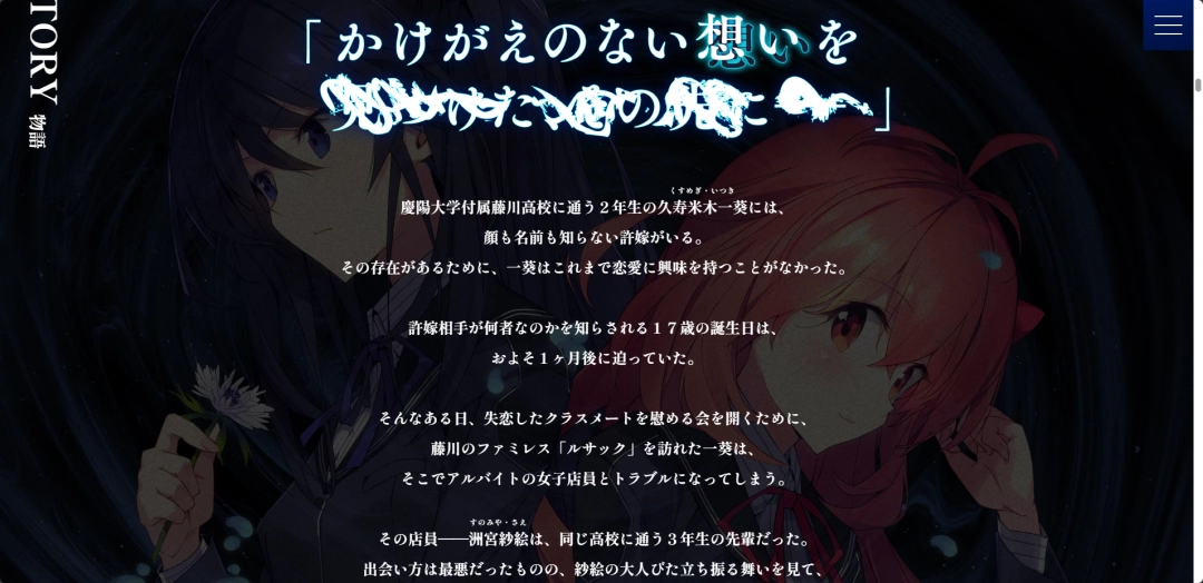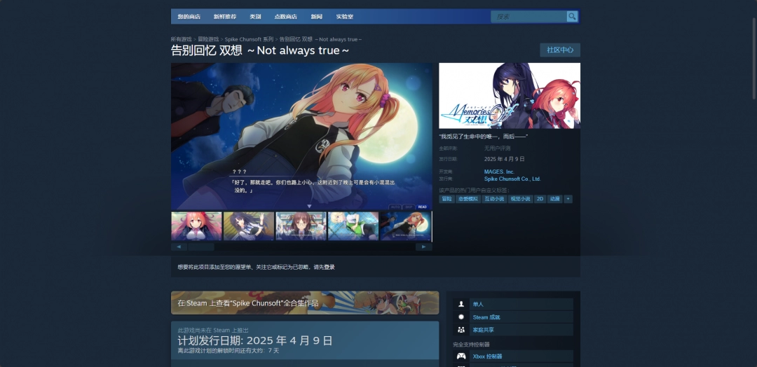 《告别回忆 双想 ~Not always true~》是告别回忆系列25 周年纪念作品,而这款游戏的官网地址就是一个官网页面,另外Steam平台的购买页面也算官网,进入到这个游戏的购买页面基本上就能知道所有这款游戏的信息。