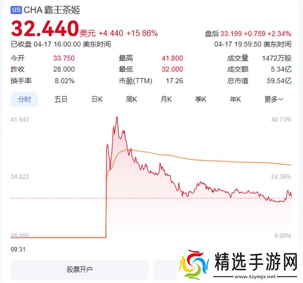 据悉,霸王茶姬在纳斯达克的上市首日表现抢眼,开盘价即达到33.75美元,较发行价上涨了20.54%。尽管盘中有所波动,但截至收盘,其股价仍稳稳站在32.44美元的高位,涨幅达到15.86%,市值更是攀升至59.54亿美元,折合人民币约434亿元。这一成绩,无疑为霸王茶姬的未来发展奠定了坚实的资本基础。