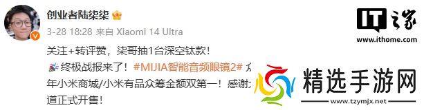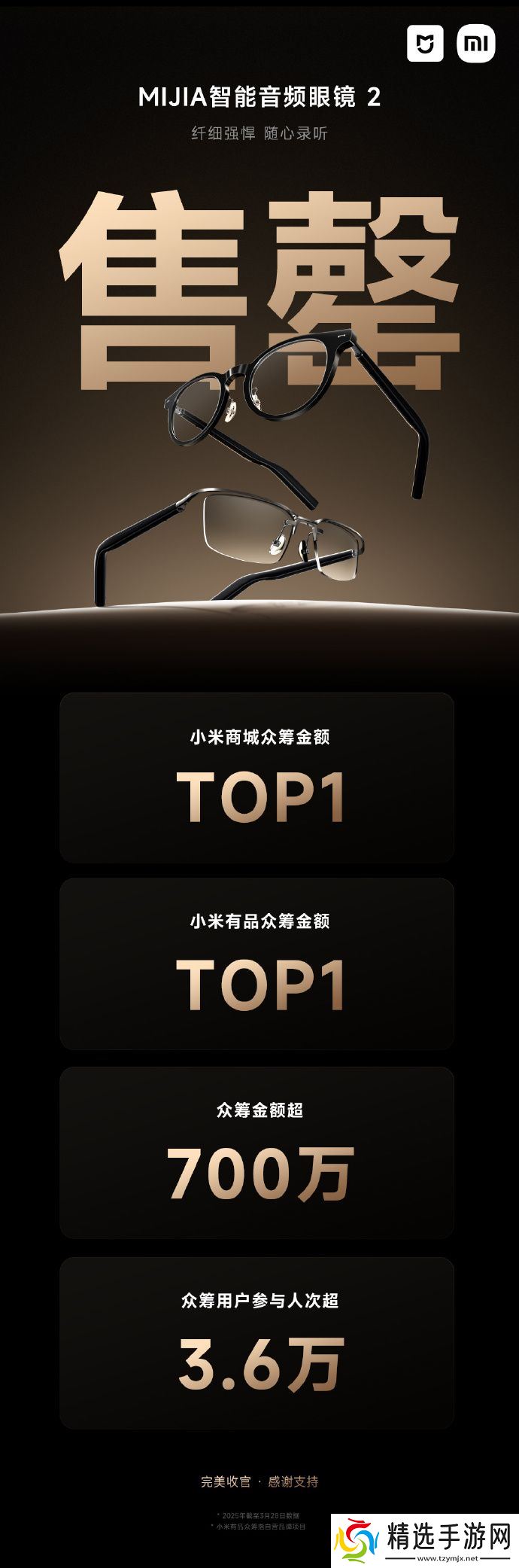 本站 3 月 31 日消息,小米 MIJIA 智能音频眼镜 2 于 3 月 26 日开启众筹,小米有品众筹价 999 元,小米有品显示四种款式均名额已满。