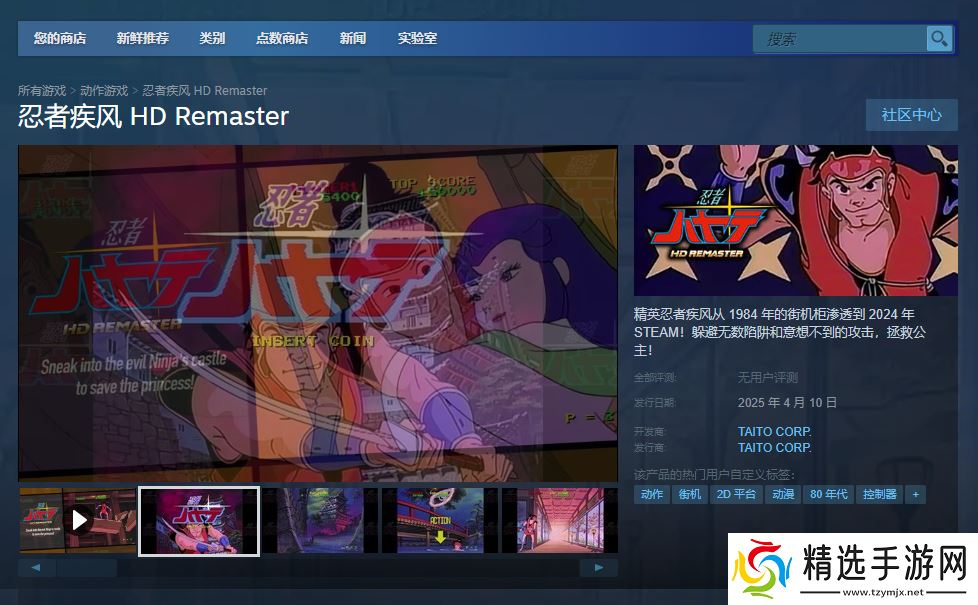《忍者疾风 HD Remaster》是1984年的街机游戏移植到Steam的高清重制版。而这款游戏的官网地址就是Steam平台的购买页面,进入到这个游戏的购买页面基本上就能知道所有这款游戏的信息。