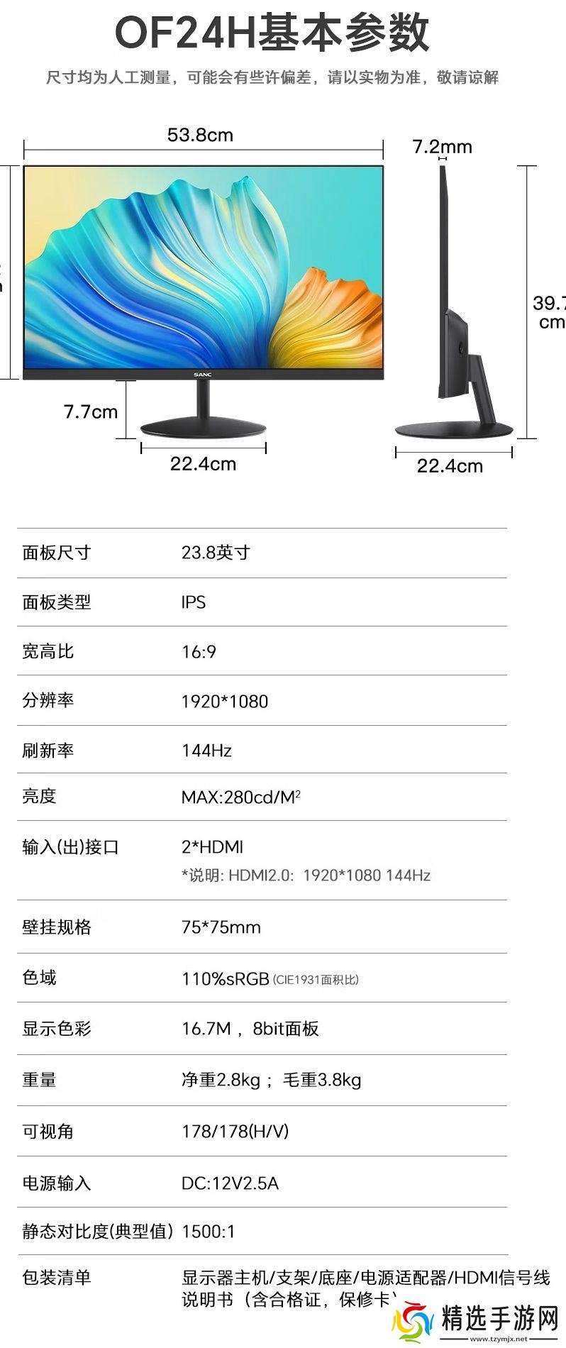本站附盛色“OF24H”23.8 英寸显示器基本参数如下: