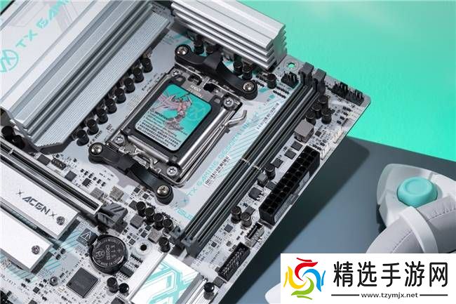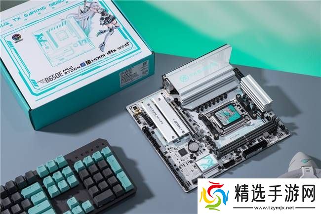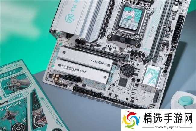 华硕B650E天选主板以其高颜值外观吸引了众多眼球。大面积的月光白装甲与浅色PCB相得益彰,再搭配上独特的魔幻青配色和TX LOGO,整体设计既时尚又富有科技感。不仅如此,主板还附带了天选姬定制主题彩盒、海报和贴纸,甚至BIOS界面和配套软件中也融入了天选姬的新造型,让玩家能够打造出专属的“天选机”。