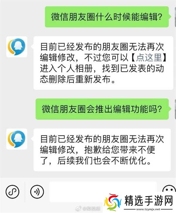 针对用户对于微信朋友圈编辑功能的期待,腾讯客服给出了明确回应。客服表示,目前,已经发布在朋友圈的内容确实不支持二次编辑或修改,对于这一限制给用户带来的不便,他们深感歉意。同时,客服也透露,微信团队正致力于不断优化产品功能,以期更好地满足用户的多样化需求。