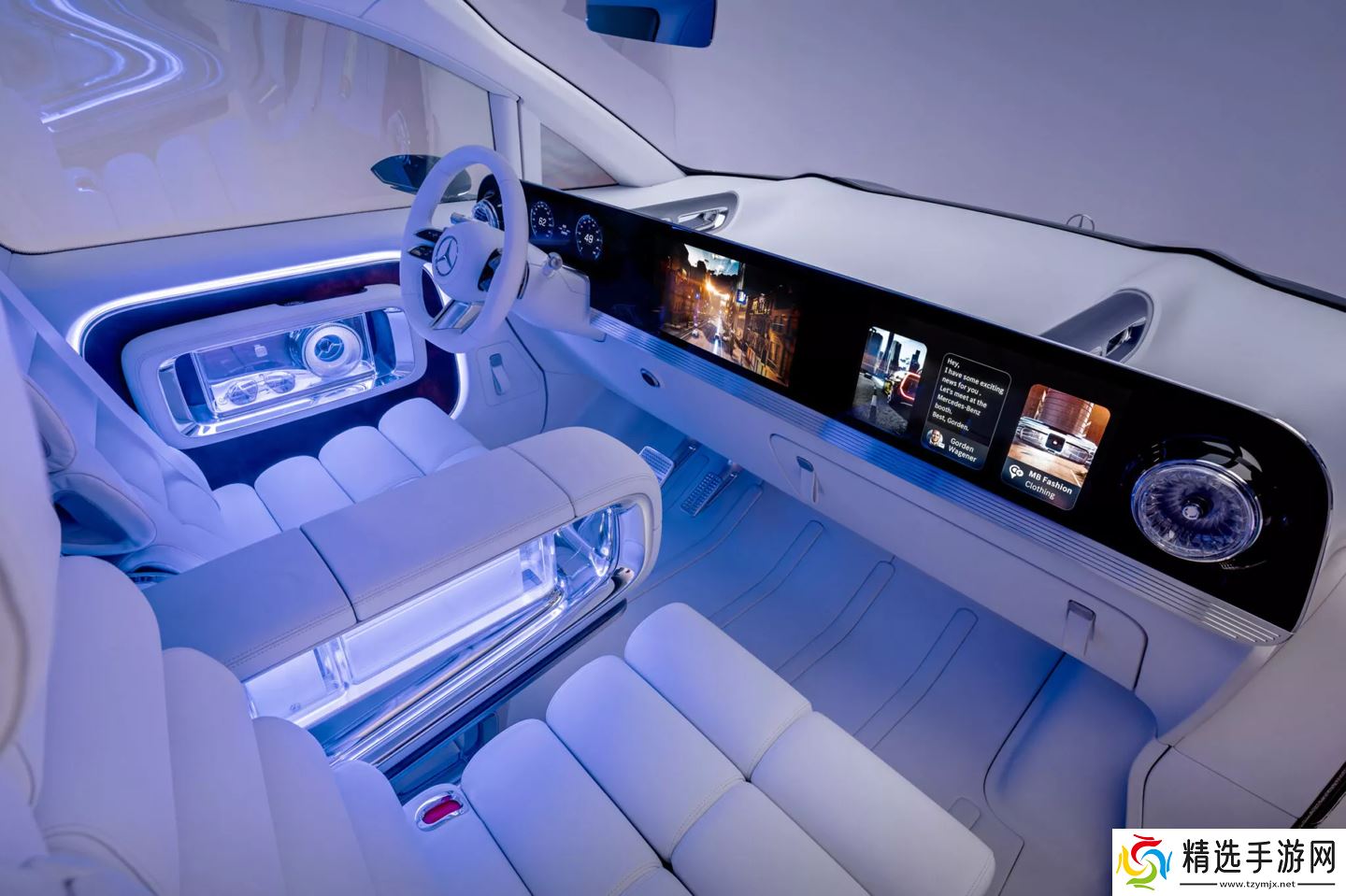 乘客靠近时,格栅会上演灯光秀,并点亮引擎盖上的梅赛德斯星标。后方则由超过 450 个三维发光百叶窗组成的 LED 光带环绕,既是尾灯也是刹车灯,极具辨识度。