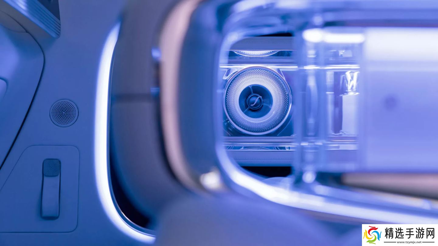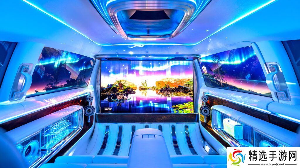 乘客上车时,一块 65 英寸 4K 巨幕从地板升起,搭配 42 个扬声器和七个投影仪,甚至能将车窗化为额外投影面,打造 360 度沉浸式观影体验。