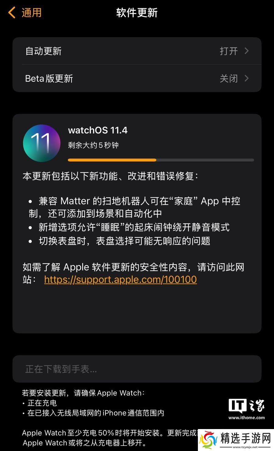 升级需确保 Apple Watch 电量≥50% 并连接 Wi-Fi:手表端通过设置-通用-软件更新完成;iPhone 用户需使用 Apple Watch 应用操作。截至发稿,所有兼容 Apple Watch Series 4 及以上机型均可获取该更新。