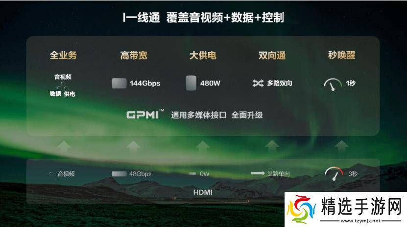 GPMI接口技术是由深圳市8K超高清视频产业协作联盟主导,携手华为、创维、海信、TCL等超过50家行业领军企业共同研发的成果,具有自主知识产权。该技术凭借“双向多流、双向控制、高功率供电、生态兼容、极速传输、快速唤醒、全链安全”等多重优势,能够支持音视频流、数据流和控制信号等多种信号的聚合传输,并提供最高480W的设备供电。这一技术的推出,有效解决了当前超高清音视频接口标准存在的功能单一、形态多样、创新能力不足等问题。