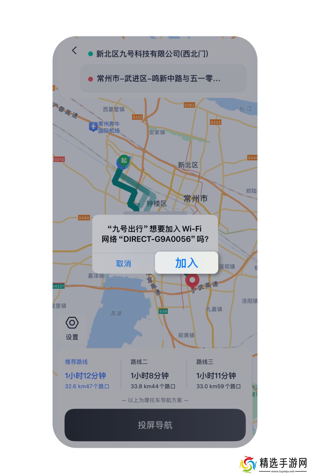 步骤四:点击投屏导航按钮,根据弹窗加入车辆热点,将行程路线一键投屏至电动车智能仪表