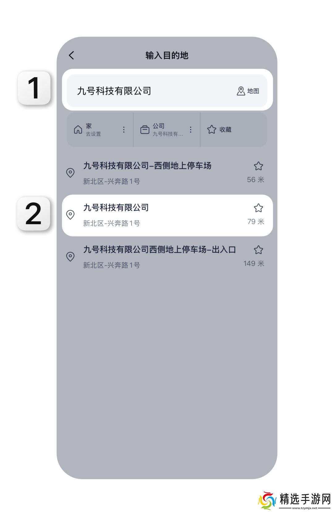 步骤三:在导航栏搜索目的地,并点击进入导航路线选择界面