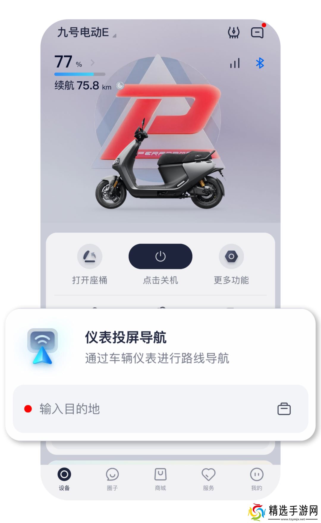 2. 打开九号出行 App,依次按照以下路径按需查找并设置投屏导航: