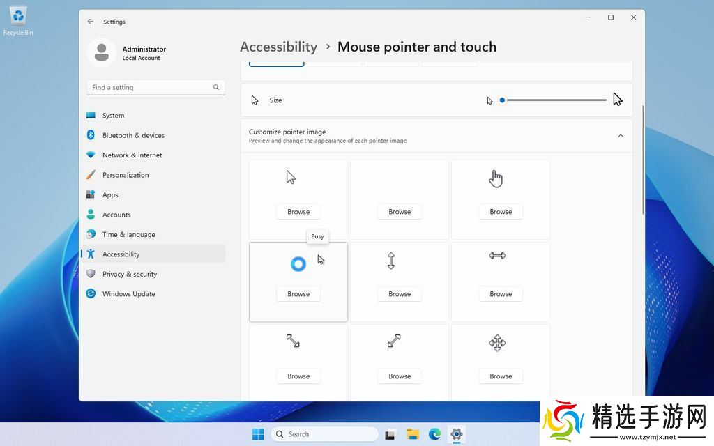 无需进入控制面板,用户是可以在设置 > 可访问性 > 鼠标和设置 > 可访问性 > 鼠标指针和触摸下,直接控制鼠标相关选项。