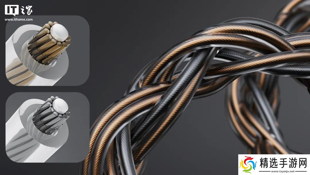 线身由 8 股 HIFI 专用特质线编织而成,单晶铜线负责电流传输,单晶铜镀银线负责数字传输。