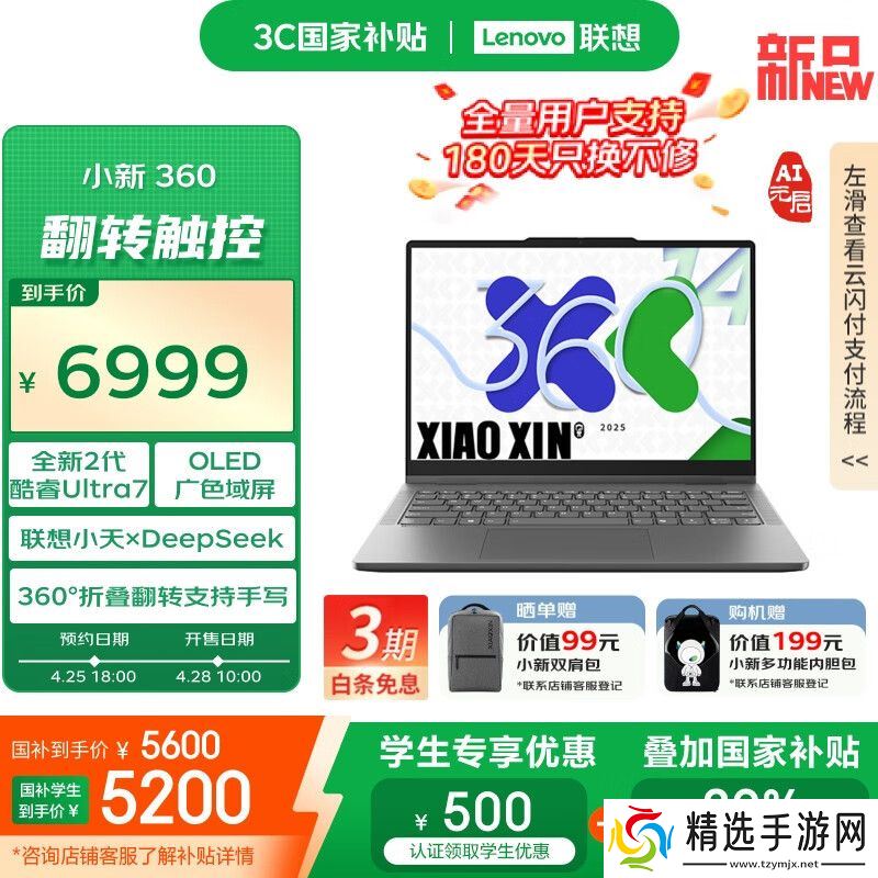 本站 4 月 25 日消息,联想小新首款翻转本“小新 14 360 AI 元启版”今日在京东平台上架并开启预约,首发 6999 元,国补到手价 5600 元,国补学生到手价 5200 元,4 月 28 日 10:00 开售。